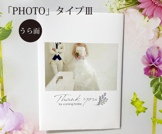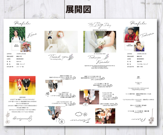 前撮り写真を全面に使用した席次表!手の平サイズの持ち運び便利な席次表!