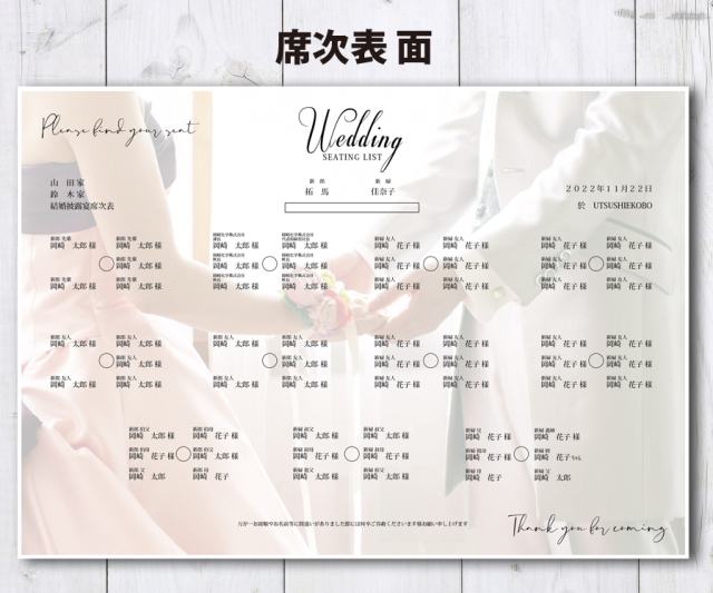 オーダーメイド(無料)もできますのでアイデア次第で一層面白い席次表が仕上がります。