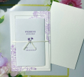 コットンのような手触りの紙に、温かみのある活版印刷で花束をあしらいました。幸せを願う四葉のクローバーがワンポイント。アイボリーのサテンのリボンで結ばれています。招待状のご用意はお任せを!