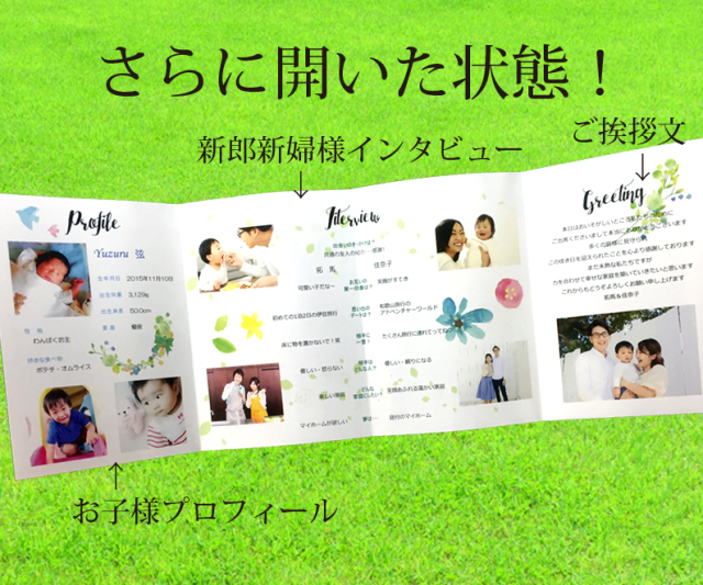 お子様のご紹介も兼ね、写真をたくさん使って可愛らしく仕上げましょう。オーダーメイドも無料!。