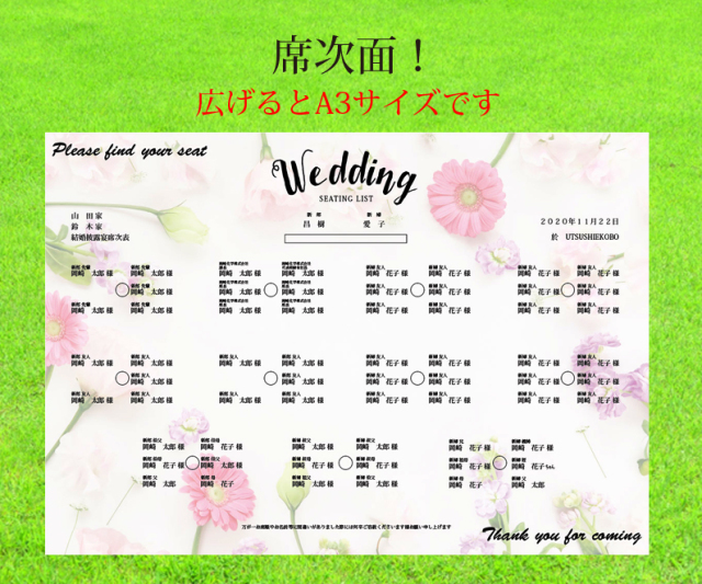 サイズはA3サイズを使用。A4サイズとは違い文字が小さくならないのでゲスト様にも失礼になりません。