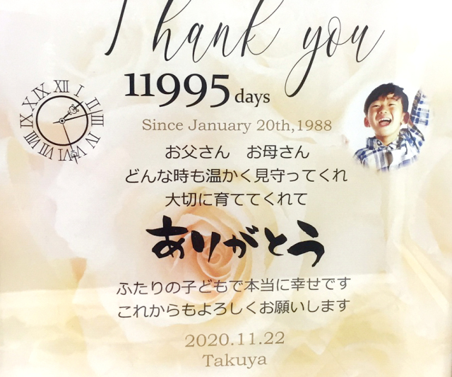 誕生日から挙式日までの合計日数!長い間大切に育ててくれてありがとう。