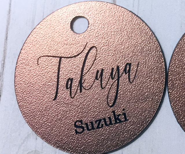 スタイリッシュで可愛いい!高級感あふれるブロンズ風!どんな色味のテーブルコーディネートにも相性ぴったりです。!オーダーメイド対応!挙式後は旅行のキャリーバックのネームタグに最適です。