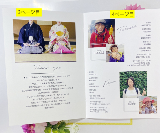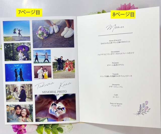 前撮り写真を表紙にした8ページプロフィールブック席次表!