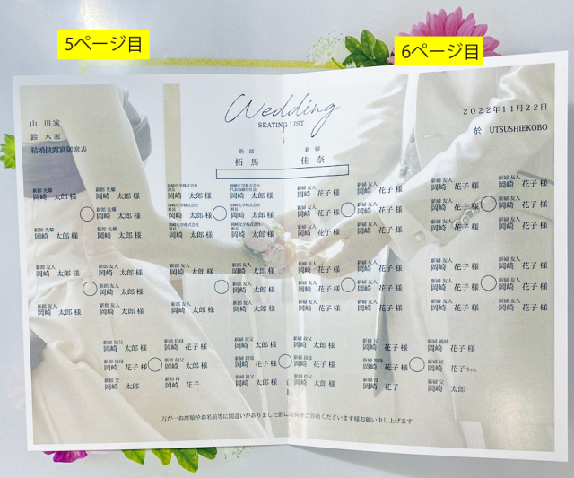 席札/6つ折 席次表&プロフ