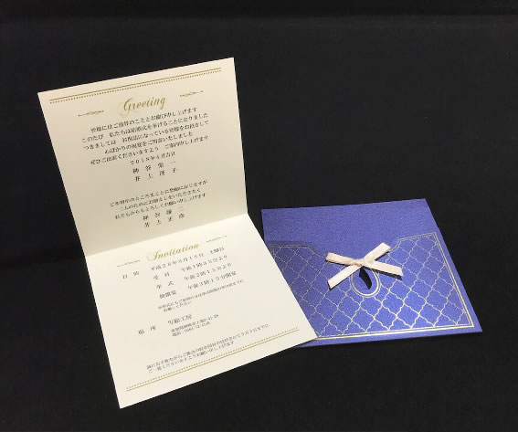●「式場文面」とは式場様の専用フォーマットを指します。使用する場合はメールにてお送りください(ご注文から2日以内)。自作文面も同様となります。なお、使用しない場合は当店のフォーマットでお作りいたします。