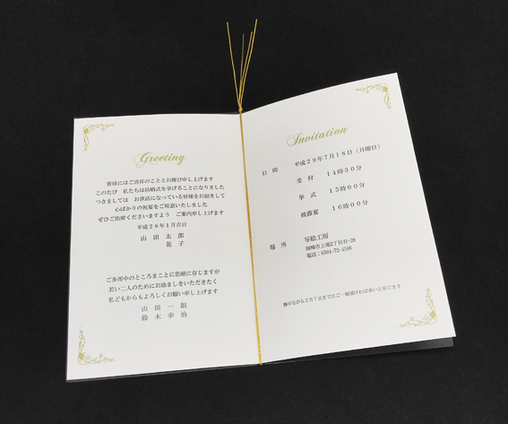 忙しい新郎新婦様!招待状のご用意はお任せを!同じ種類の席次表と席札もご用意していおります。