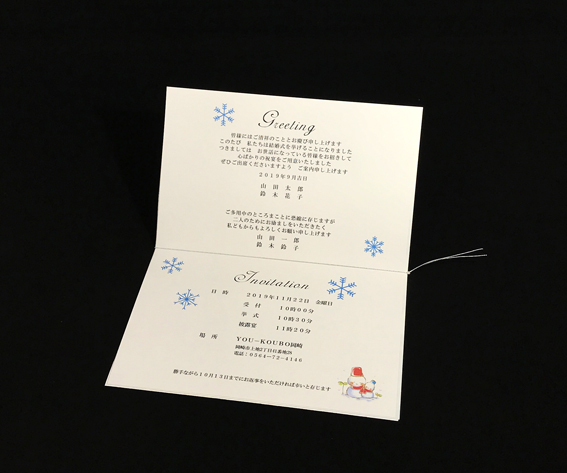 雪にちなんだ招待状となります。他にも「冬」をテーマにした招待状もございますのでぜひご覧ください。