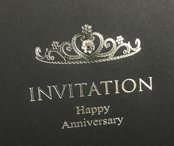 プリンセスのティアラがポイント!シックなブラックとラグジュアリーなゴールドの箔押し!本状、返信はがき、封筒、シールが含まれます。手作りキットの場合は付箋は別料金となります。
