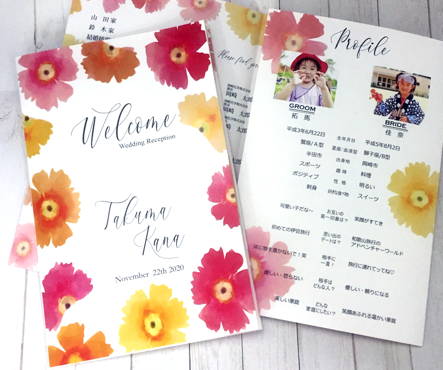 席札/ブックサイズ席次表&プロフ