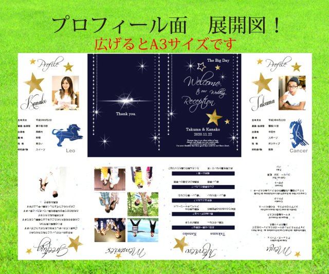 ハンディ席次表&プロフ(8つ折)「きらきらスター」