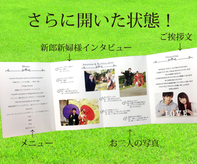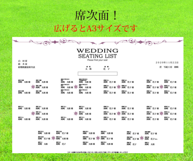 カスタマイズ(無料)もできますのでアイデア次第で一層面白い席次表が仕上がります。